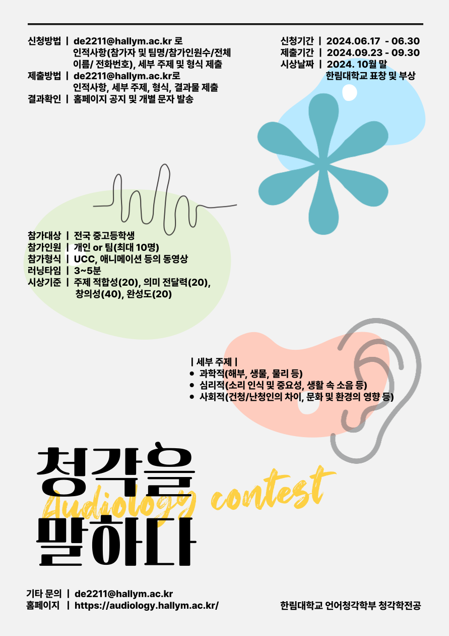전국의 중학생 및 고등학생을 대상으로 한 <청각을 말하다> 공모전을 개최합니다.