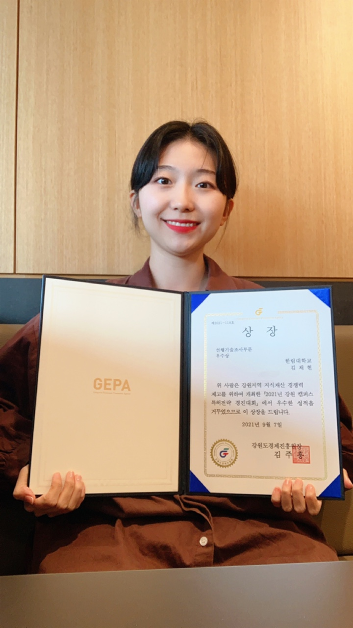 중국학과 17학번 김채현 학생, 강원 캠퍼스 특허전략 경진대회 우수상