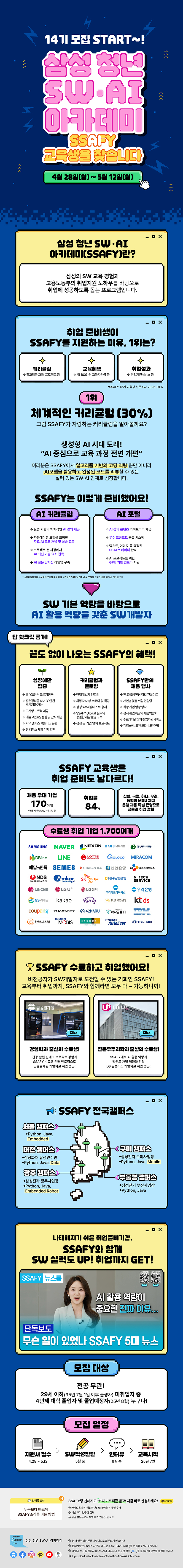 삼성청년SW·AI아카데미에서 14기 교육생을 모집합니다.