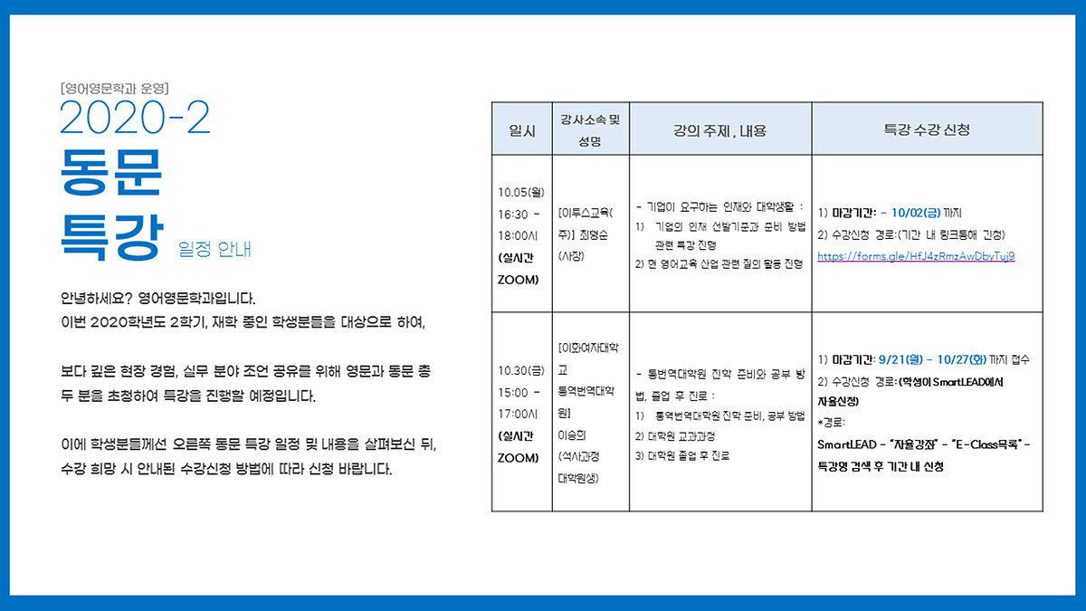 [영문]2020-2 동문특강 진행(기업이 요구하는 인재와 대학생활)