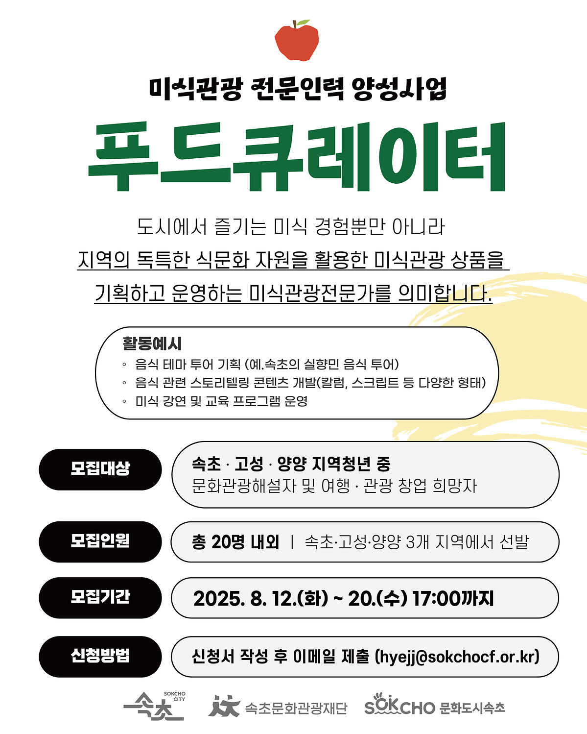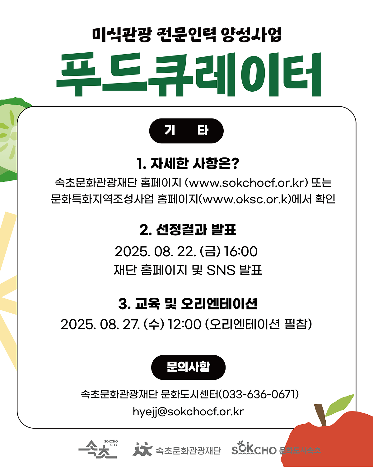 [속초시] 2025 미식관광 전문인력 양성사업 - 푸드큐레이터 교육생 모집