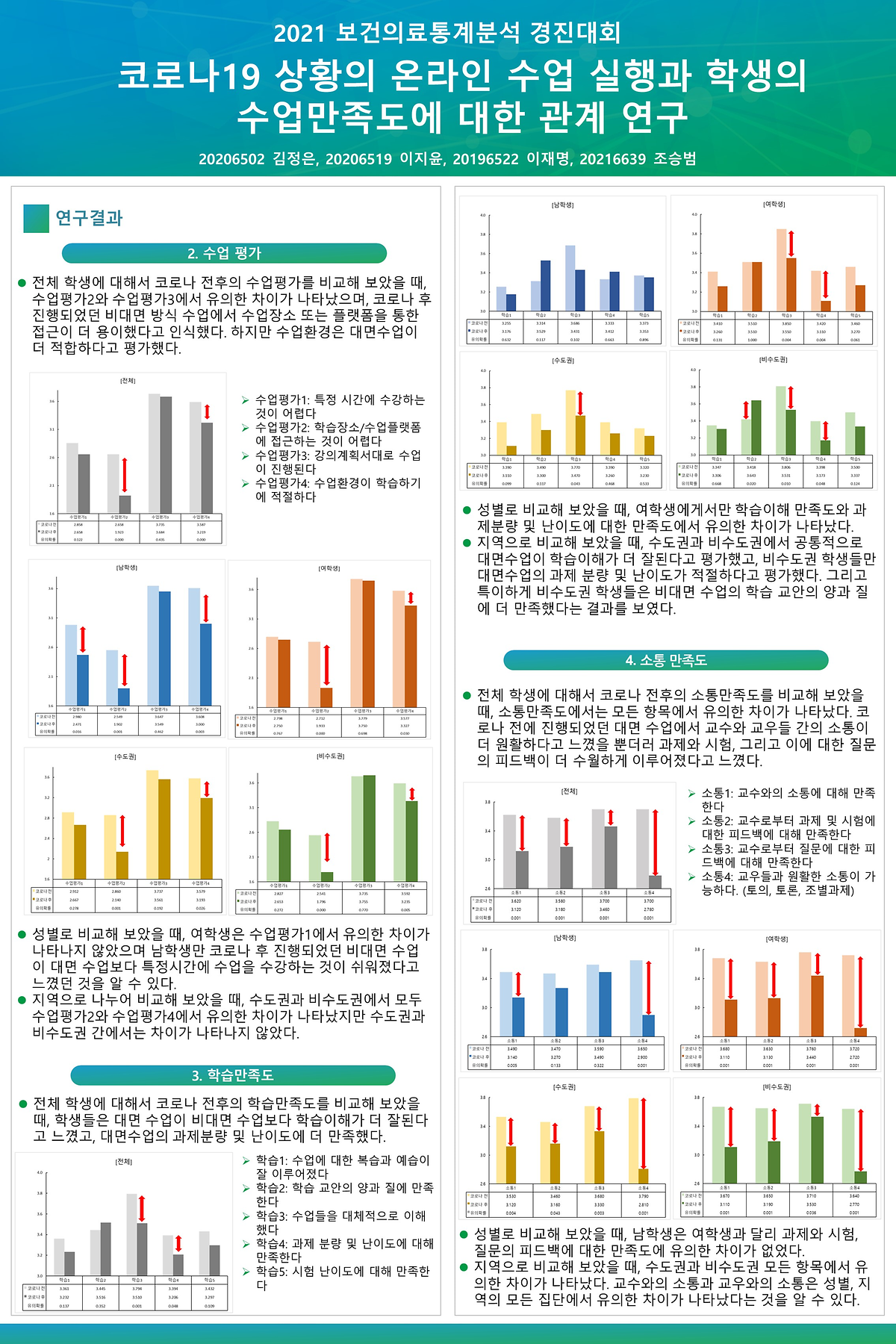 [2021 보건의료통계분석 경진대회] 코로나19 상황의 온라인 수업 실행과 학생의 수업만족도에 대한 관계 연구