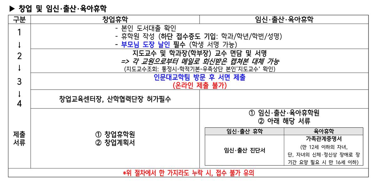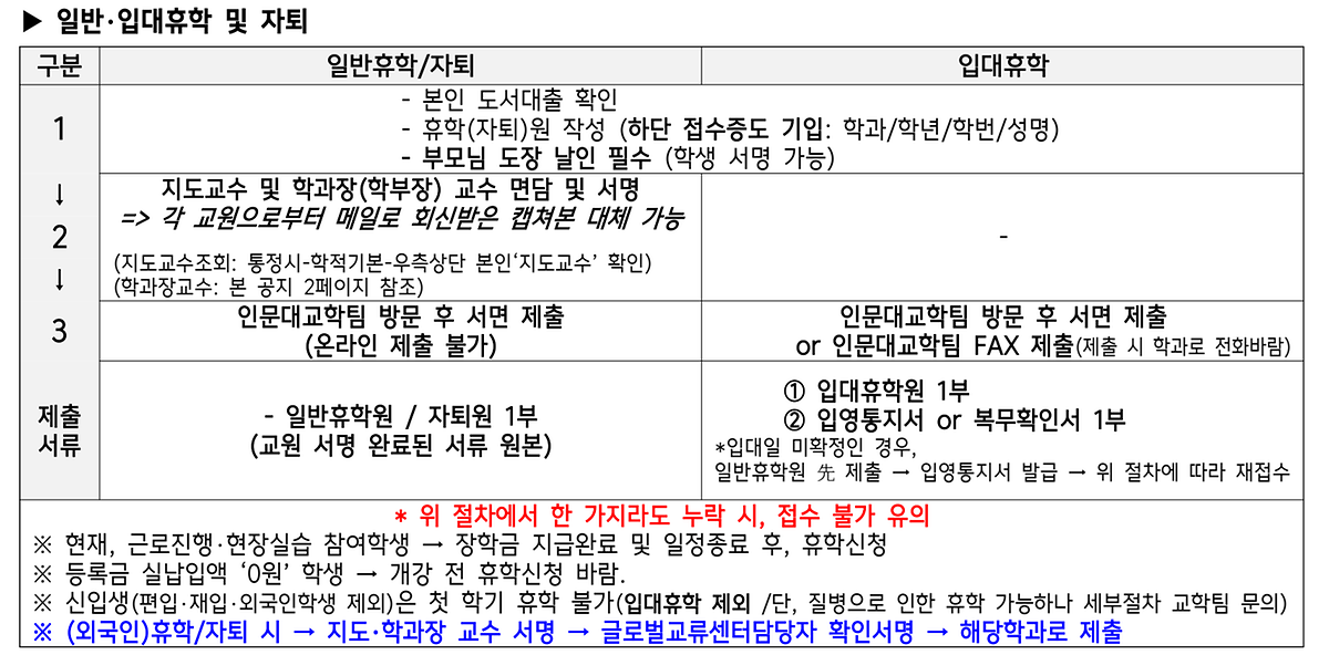 *** 휴학원 및 자퇴원은 서면 제출만 가능하오니 참고 바랍니다.