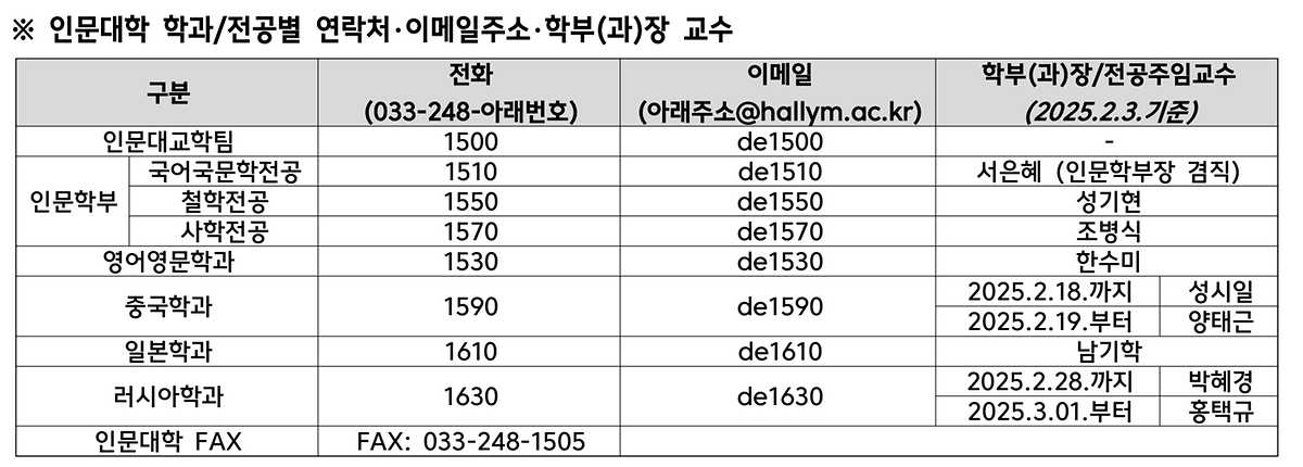 · 2025학년도 1학기 휴학 및 복학 관련 공지는 대표 홈페이지 -  교내 공지사항에서 확인 가능합니다.