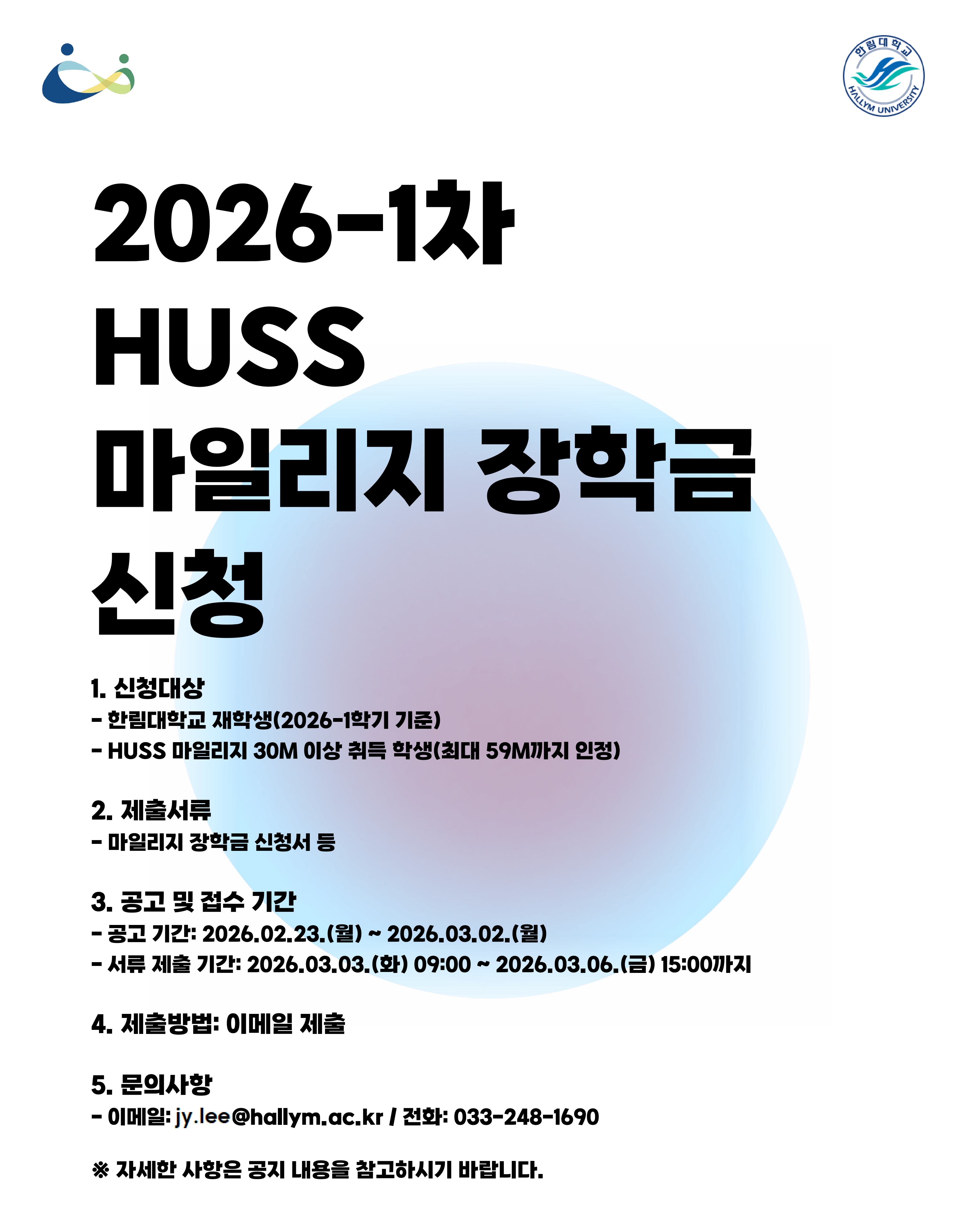 2026-1차 HUSS 마일리지 장학금 신청 안내