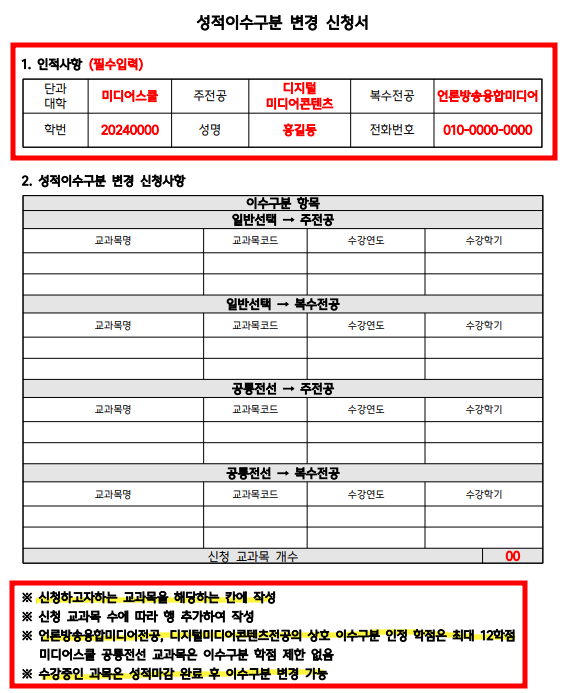 성적이수구분 변경 신청 시,