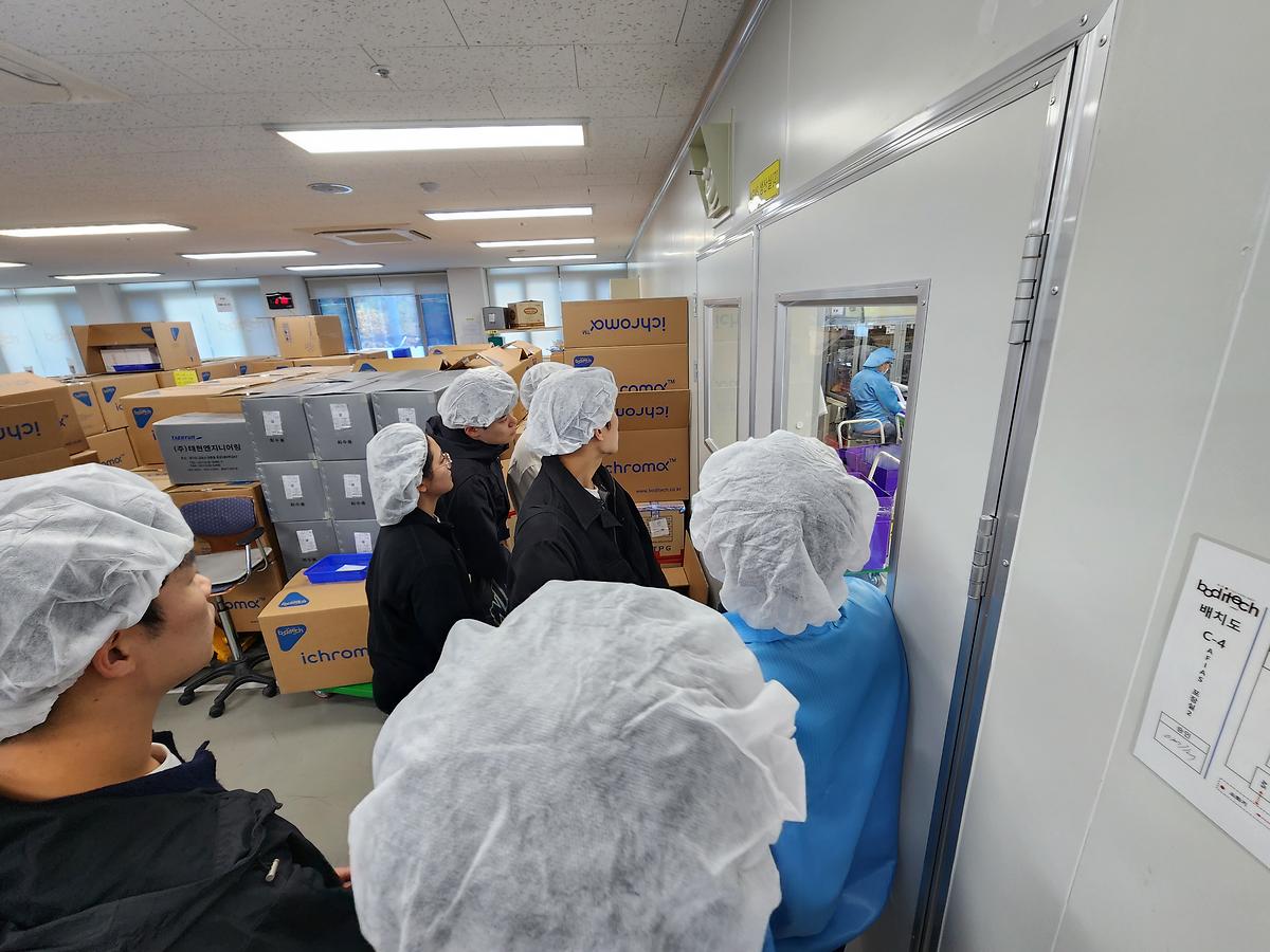 2023년 10월 27일(금) 춘천 소재 체외진단기기 개발업체인 (주)바디텍메드에 박종민 교수와 학부생 9명이 방문하여 체외진단 기술분야에 대한 소개와 향후 전망에 대해 청취하고 생산/품질관리 현장을 견학하였다.