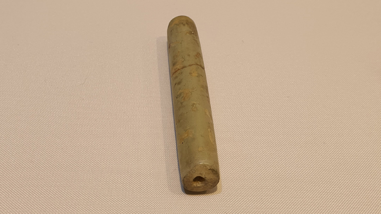 동굴 내부에서 출토된 백마노로 만들어진 대롱옥입니다.