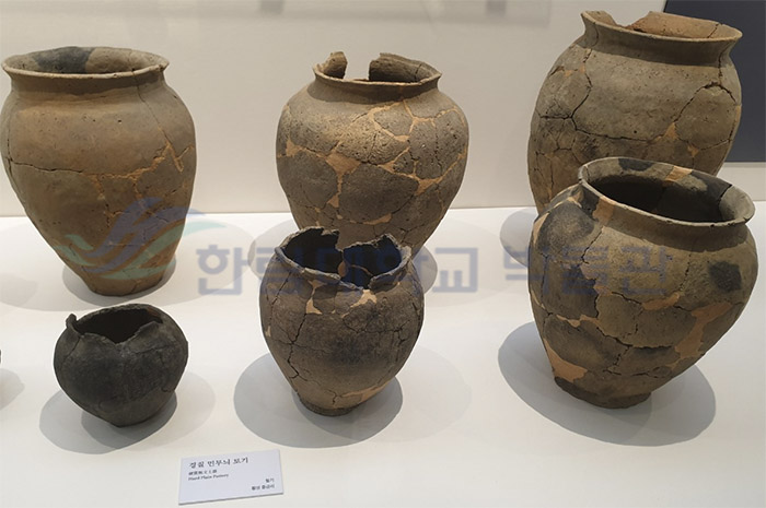 경질 민무늬 토기는 1960년대 풍납토성에서 처음으로 발견되어 풍납리식 무문토기(風納里式 無文土器)로 불리다가, 1980년대 국립중앙박물관에서 춘천 중도 유적의 집자리를 발굴하는 과정에서 많은 양이 출토되면서 중도식 무문토기(中島式 無文土器)라고 명명하게 되었습니다. 이후 한강 유역과 강원 영서‧영동을 포함하는 중부지역 뿐 만 아니라 남부지역까지 출토 범위가 넓어지면서 경질 민무늬 토기로 불리게 되었습니다.