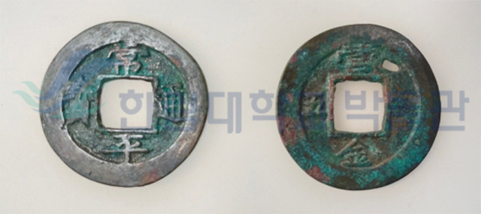 사진의 상평통보는 강화도 관청리 조선궁전지에서 출토된 중형전(中形錢)입니다. 중형전은 1752년(영조 28년)부터 주조된 것으로,
