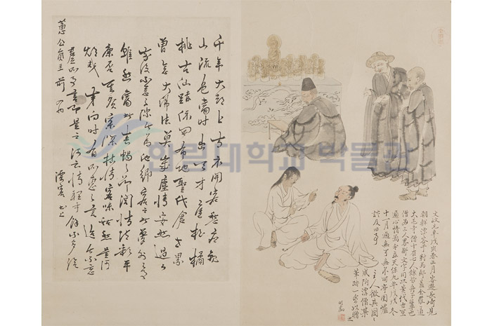 이 그림에는 당시 일본의 혜공이라는 스님이 불상을 일본에 봉안하고 머물기를 제안하였지만 완곡하게 거절했다는 내용의 편지도 함께 있습니다.