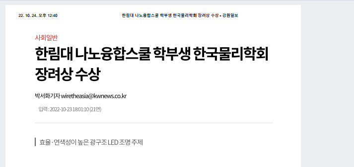 1024한림대 나노융합스쿨 학부생 한국물리학회 장려상 수상 - 강원일보.pdf
