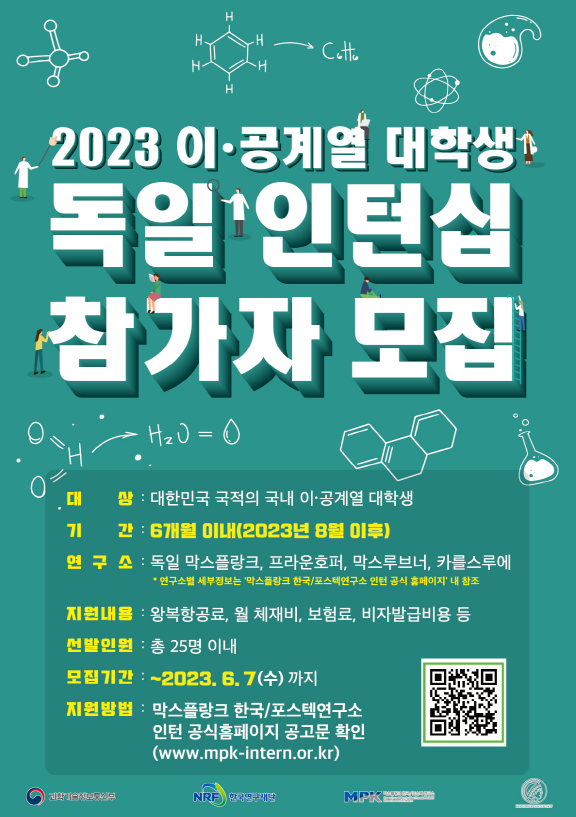 국내 이공계열 대학생을 대상으로 독일 우수 연구소에서 연구 인턴 활동을 수행하는 '2023년 한-독일 글로벌 인재양성 플랫폼' 사업을 추진하고 있으며,