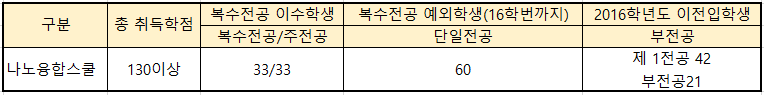 (복수․부전공은 타 학과 소속 학생이 나노융합스쿨을 복수.부전공하는 경우, 나노융합스쿨 학생이 타 학과를 복수.부전공 하는 경우 둘 다 해당 됨.)