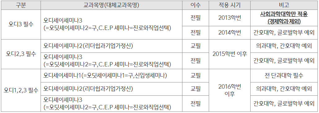③ 편입생은 2014학번부터 오디세이세미나3 이수 필수