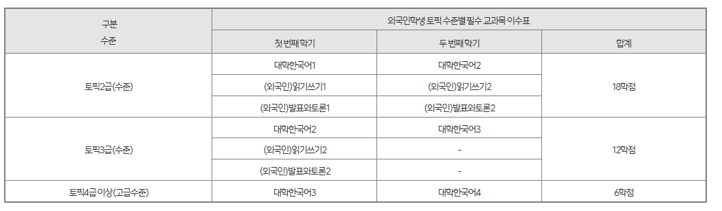 3. 외국인 입학자 교양 교과목 이수 기준