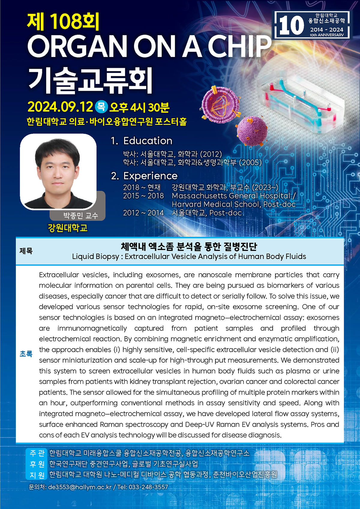 [미래융합스쿨] 제 108회 Organ on a Chip 기술교류회 안내