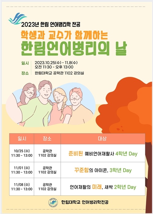 한림대학교 언어병리학 전공은 2023년 학생과 교수가 함께하는 한림언어병리의 날 행사를 3주간 진행하였습니다.