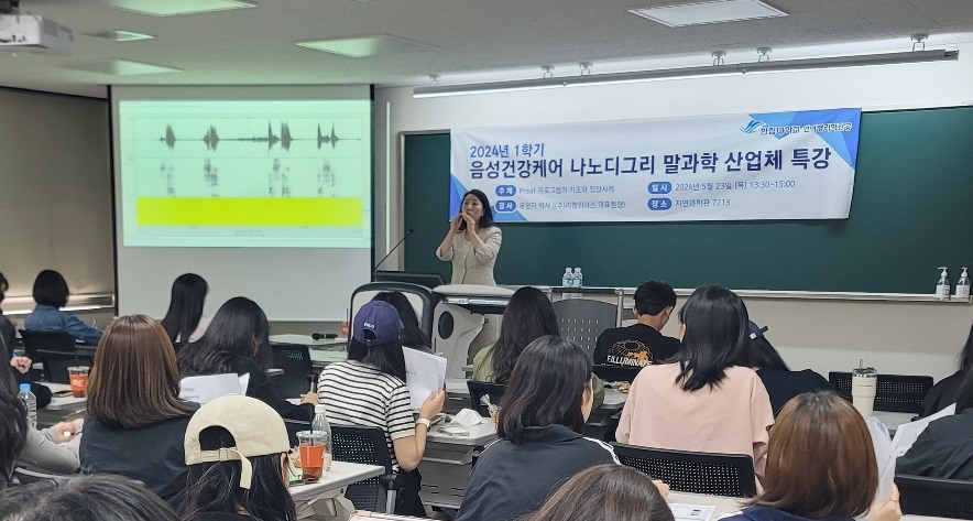 2024년 5월 23일 한림대 언어병리학전공의 음성건강케어 나노디그리의 산업체 특강 프로그램으로 (주)리햅위더스 대표이사 유현지 박사가 'Praat 프로그램의 기초와 임상사례'를 주제로 말과학 수강생을 대상으로 특강을 실시하였습니다.