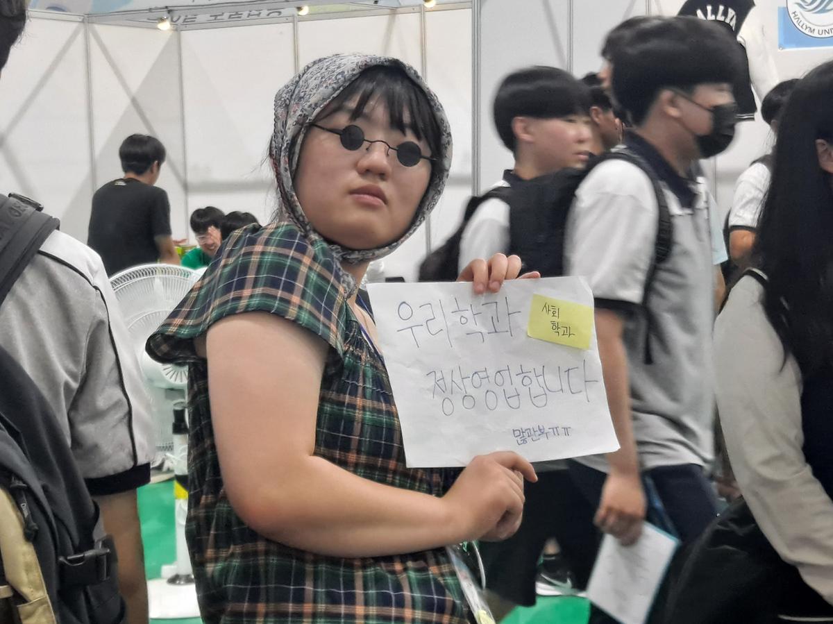 사회학과에서는 '사회학과, 정상영업합니다'라는 주제로 전공체험 부스를 운영했습니다. 사회학 관련 키워드를 퀴즈에 녹여내고, 학생들이 직접 태블릿을 이용하여 정답을 그림으로 표현하는 활동이었습니다.