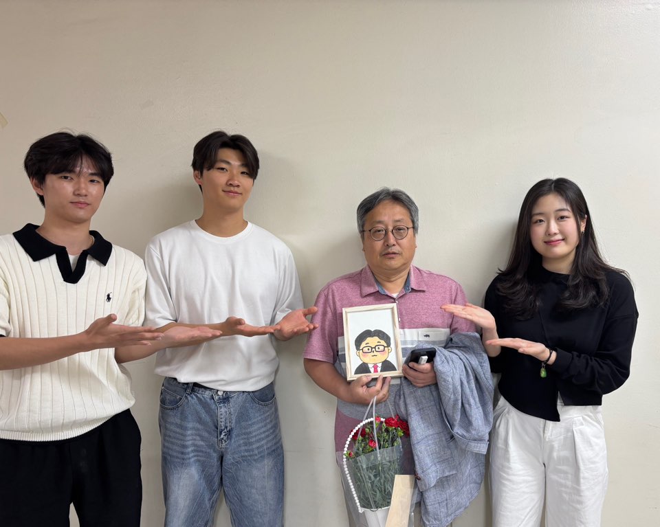 또한 스승의 날을 맞아 학생회에서는 카네이션과 직접 교수님을 그린 그림을 전달 드리는 깜짝 이벤트도 진행하였습니다.