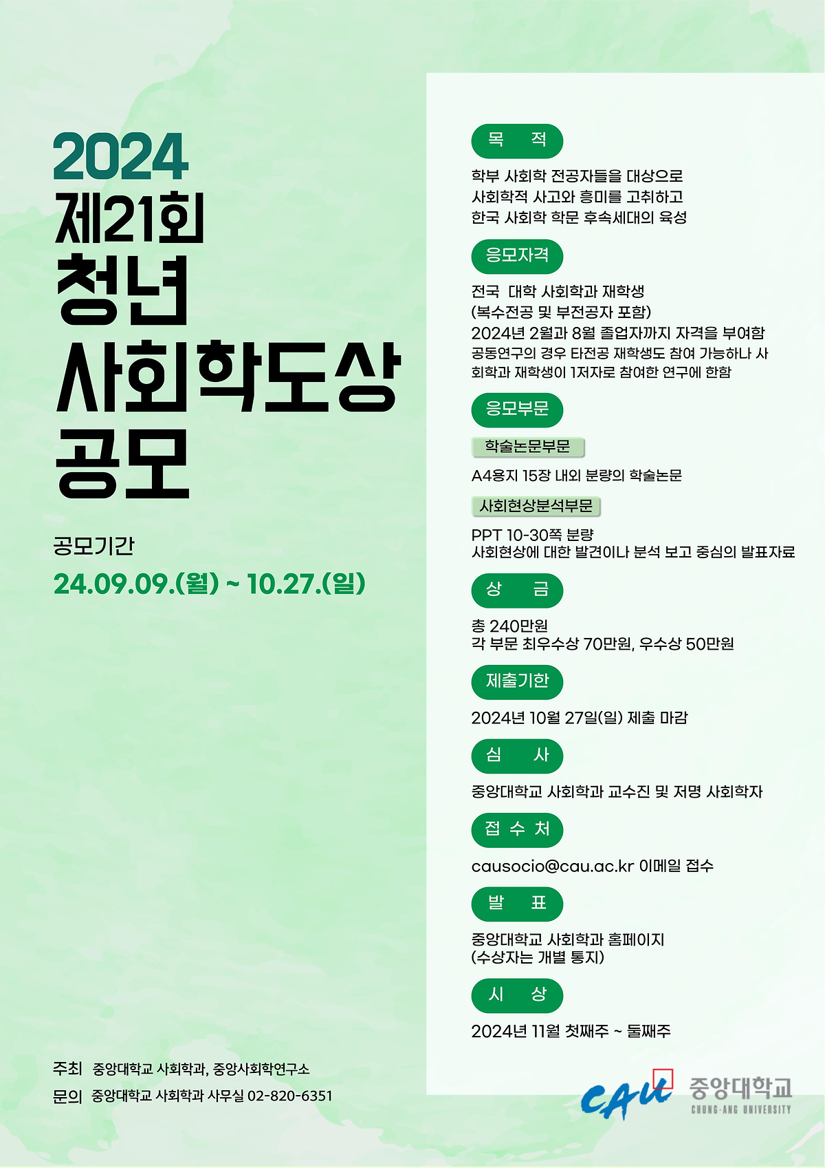 [중앙대학교 사회학과] 2024 제21회 청년사회학도상 공모 안내