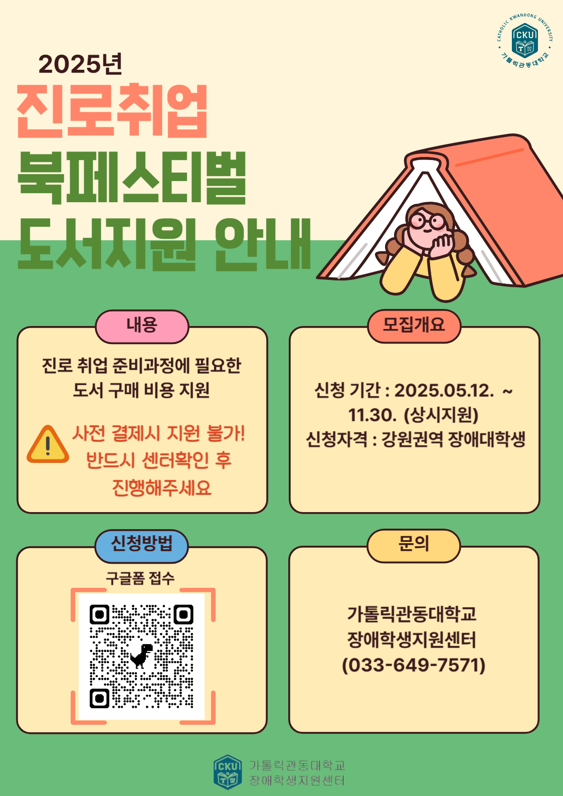 - 가톨릭관동대학교 장애학생지원센터 T. 033-649-7571