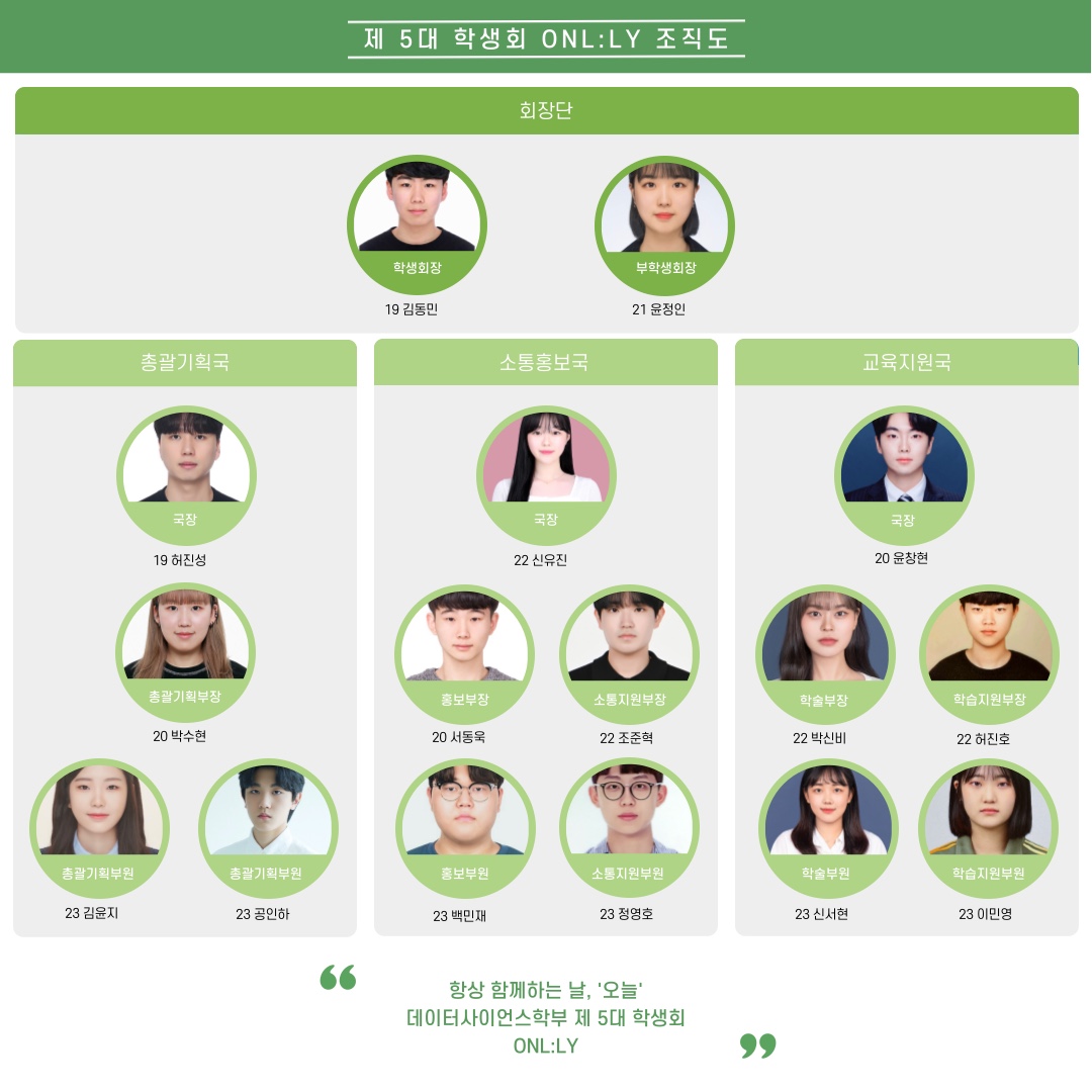 반갑습니다 ! 2023, 제5대 데이터사이언스학부 학생회 'ONL:LY-오늘리' 입니다.